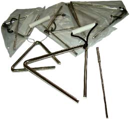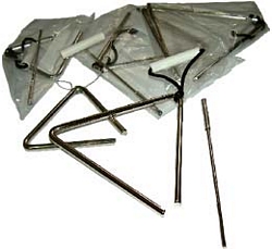 Komplet składa się z 3 trójkątów niklowanych wielkości: 18 x 18cm, 15 x 15cm , 10 x 10cm. Minimalne zamówienie to 5 kpl.