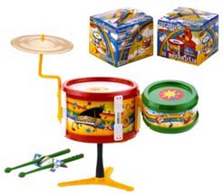 Zestaw wykonany z tworzywa - dwa bębenki ,talerz i pałeczki Minimalne zamówienie to 3 kpl.