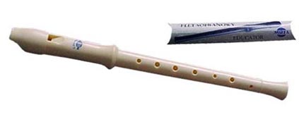 Flet sopranowy w ,,C" z aplikaturą niemiecką z pojedynczymi otworami- opakowanie kartonowe (+ wycior, instrukcja ).Kolor beżowy.