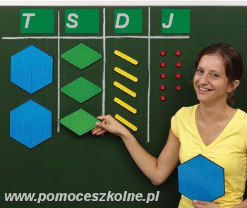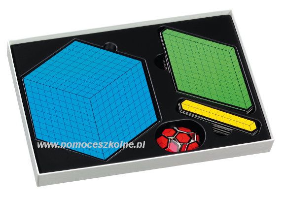 Model płaskich ,,bloków" magnetycznych oprócz różnicowania wielkością wykorzystuje również element kolorystyczny do podkreślania pozycji dzisiętnej.