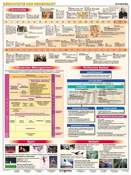 Deutschland im Uberblick / Geschichte und Gegenwart - plansza dwustronna - 120x160cm.  Plansza oprawiona w drewniane półwalki i przygotowana do zawieszenia.Bardzo dobra jakość wykonania.
