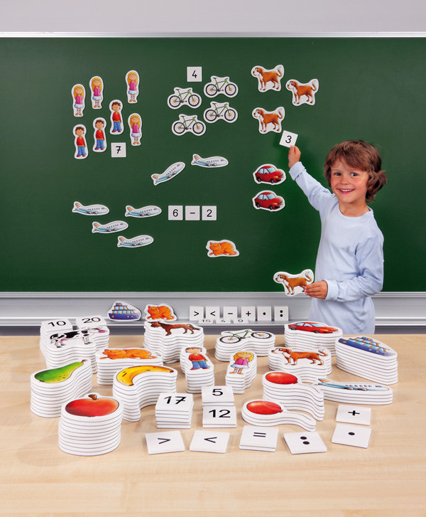 W komplecie jest 196 szt. liczmanów przedstawiających zwierzęta,owoce, narzędzia itd.
