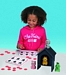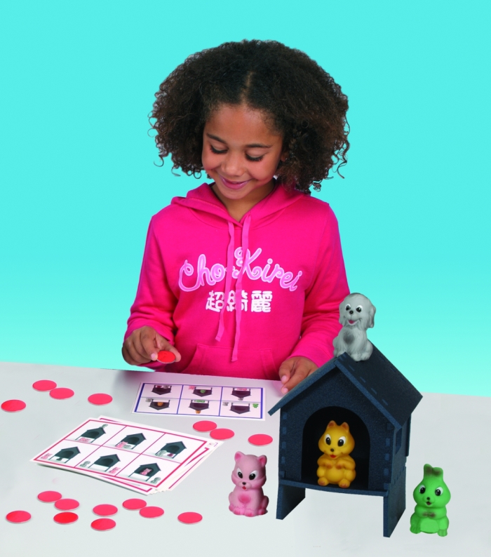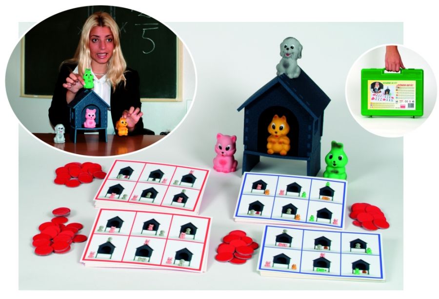 Zestaw zawiera 1 domek, 4 różnego koloru zwierzątka, 25 laminowanych kart i 150 żetonów przyznawanych dzieciom jako punkty.Całość zamykana jest w walizeczce.