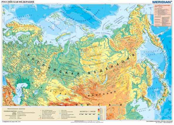 Federacja Rosyjska fizyczna - mapa 150 x 110 cm. Materiał: folia strukturalna, wałki drewniane.