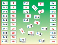 Wymiary kartoników to 3,5x6cm. Karty są dwustronne. Na rewersie zawierają wynik mnożenia z awersu. To doskonałe ćwiczenie w doskonaleniu umiejętności mnożenia i w swobodnym poruszaniu się w świecie liczb. Całość zapakowana jest w plastikowym pudełeczku o wymiarach 18x15x6cm.