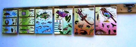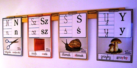 - dzięki znajdującym się w zestawie dodatkowym zawieszkom w kształcie litery S - można równolegle wyeksponować 3 duże plansze ścienne, popularnego formatu dydaktycznego 100 cm x 70cm.: