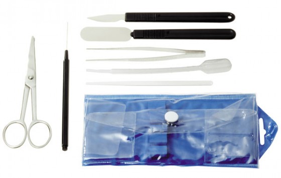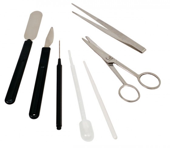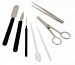 Komplet 7 przyrządów do przygotowywania preparatów. Stal nierdzewna.