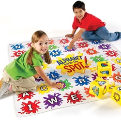 Winylowa mata do nauki j. angielskiego. Zawiera namalowane litery które dziecko musi wskazac. Ponadto do zestawu są dołączone kostki z rysunkami. W zależności od tego jaki obrazek na kości wykula dziecko,taką literkę powinno wskazać. Mata ma wymiary 137cm. Posiada przyciski z melodyjkami i dzwiekami. Uczy prawidłowej wymowy .