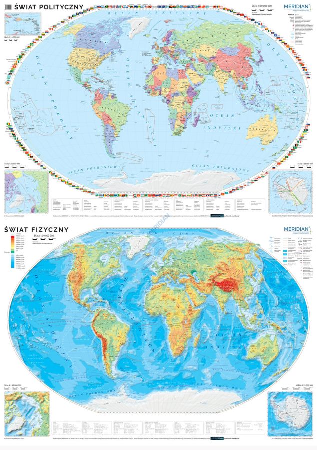 Dwustronna ścienna mapa świata zaktualizowana w roku 2021.