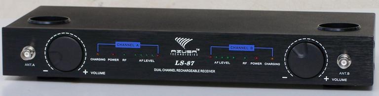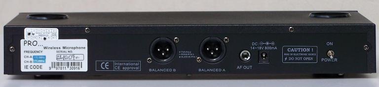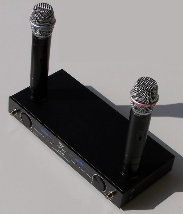 Urządzenie wykonane jest z najwyższą starannością z najwyższej jakości materiałów. Mikrofony bezprzewodowe o dużym zasięgu 100 metrów. Cechą tego zestawu jest pełna, czysta barwa i soczysty dźwięk, mikrony można spokojnie porównywać z mikrofonami renomowanych marek, za które trzeba zapłacić po kilka, a nawet po kilkanaście tysięcy złotych. Użytkownikami tych mikrofonów są profesjonaliści - muzycy, konferansjerzy itp. W obudowie porty do ładowania akumulatorów w mikrofonach.