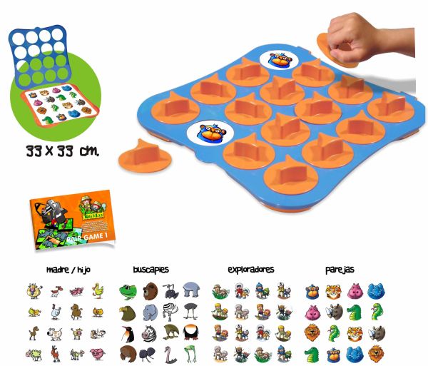Klasyczna gra w dopasowywanie par. Dziecko ma za zadanie znaleźć albo głowę i resztę tułowia zwierzęcia, albo znaleźć takie same zwierzątka, albo znaleźć mamę zwierzątka i jej dziecko. Zabawa rozwija pamięć wzrokową dziecka, wspomaga kojarzenie. Wspaniała zabawa. Idealna do przedszkoli wykonana bardzo starannie z wysokiej jakości plastiku.