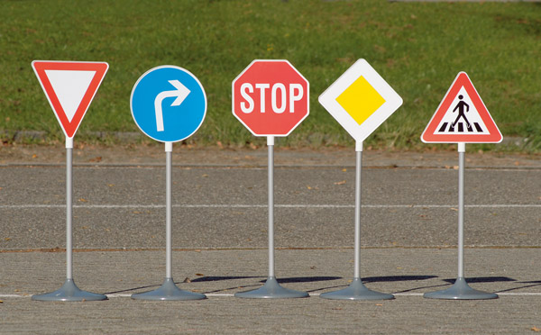Znaki drogowe do zorganizowania praktycznych ćwiczeń.