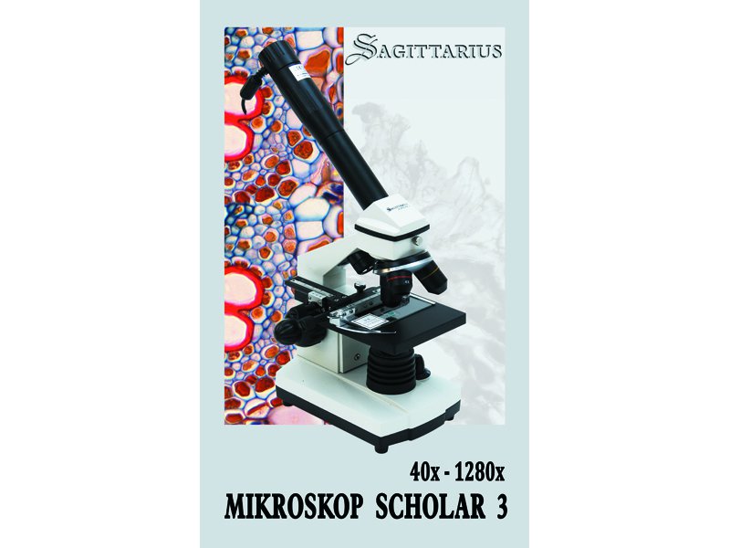 Scholar 3 to najtańszy na rynku mikroskop wyposażony między innymi w PC okular, śrubę mikro i makrometryczną, stolik krzyżowy, oświetlacz LED górny i dolny oraz szereg innych użytecznych akcesoriów.