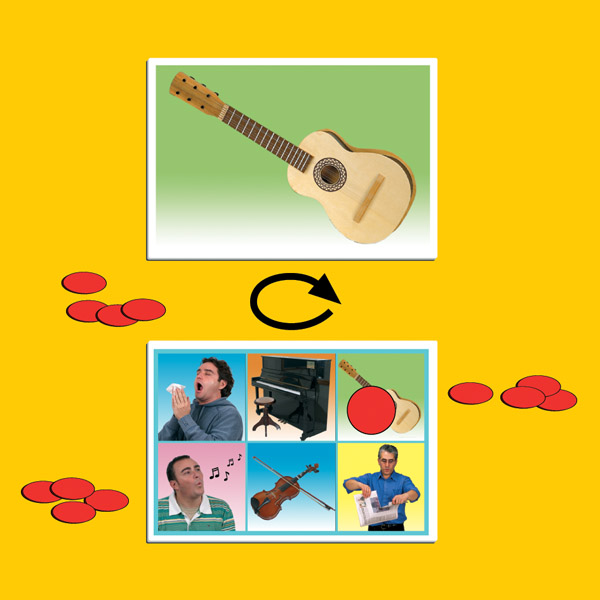 Gra dźwiękowa uczy rozpoznawania 25 odgłosów i kojarzenia ich z fotografią. Najpierw dzieci odsłuchują dźwięki, poznają ich nazwy i dużą fotografię. Następnie dzieci moga zagrać w loteryjkę - słuchają nagrań, a rozpoznane dźwięki zaznaczają na planszy żetonem.