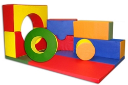 Zestaw kształtek zawiera 11 wielokolorowych, miękkich brył-klocków o różnych ,kształtach, wykonanych z pianki i obszytych skajem. Szczegółowy opis dalej.