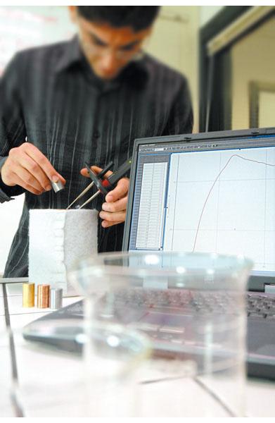Kalorymetr z mieszadłem służy do badań właściwości cieplnych ciał. Przyrząd jest odizolowany od otoczenia za pomocą osłony fi lcowej, umożliwiając wykonanie doświadczeń w stanie równowagi cieplnej.