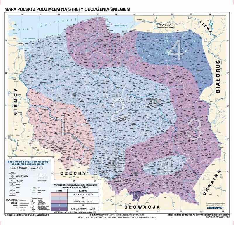 Mapa Polski z podziałem na strefy obciążenia śniegiem. nr art.MR-GE-78