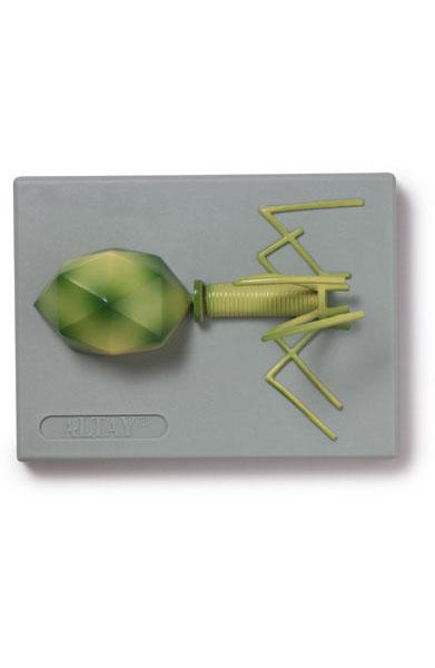 Model bakteriofagu przedstawia, powiększoną miliony razy strukturę bakteriofagu T4, wirusa, który przyczepia się do powierzchni o wiele większej, bakterii pałeczki okrężnicy.
