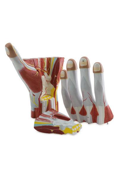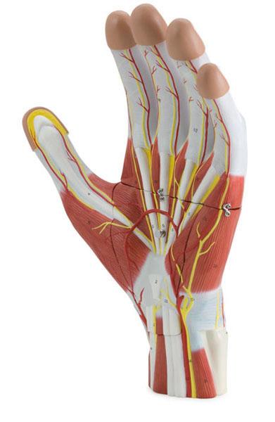 3 częściowy model, dwukrotnie powiększony; pokazuje anatomię  mięśni, nerwów, ścięgien,  struktur kostnych.