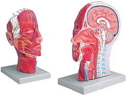 Naturalnych rozmiarów model przedstawia prawą połowę głowy i szyję w przekroju wzdłuż płaszczyzny strzałkowej. Powierzchnia zewnętrzna (pozbawiona powłoki zewnętrznej - skóry) ukazuje układ mięśni mimicznych, naczynia krwionośne, odgałęzienia nerwowe twarzy i ich zakończenia w skórze głowy, śliniankę przyuszną i gruczoł podżuchwowy. Przekrój środkowy przedstawia mózg i jego budowę wewnętrzną, górne drogi oddechowe, jamę gardłową oraz przekrój kręgu szyjnego