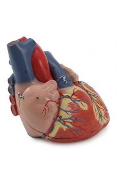 2-krotnie powiększony model opisuje wszystkie główne struktury ludzkiego serca w sposób bardzo szczegółowy. Z prawej strony ruchoma część modelu pozwala obejrzeć wewnętrzne komory i zawory. Ruchoma część - małżowina lewej komory po odsłonięciu, pokazuje atrium, zastawki mitralne, komory i mięśnie brodawkowate.