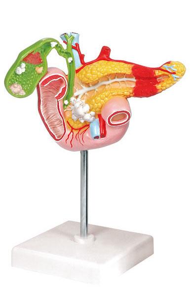 Naturalnej wielkości model prezentuje najczęstsze choroby pęcherzyka żółciowego, trzustki i dwunastnicy. Na częściowo otwartym pęcherzyku przedstawione zostały kamienie usytuowane w różnych lokacjach, zapalenie pęcherzyka żółciowego, polipowatość i rak. Choroby zaprezentowane na trzustce to : zapalenie trzustki w końcowej części trzustki i raka początkowej części. Model zawiera również przekrój dwunastnicy z wrzodem dwunastnicy.