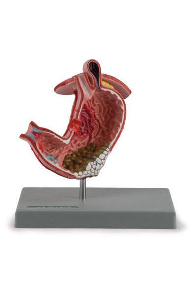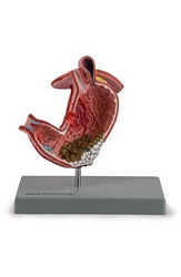 1-częściowy model naturalnej wielkości, opisuje najczęstsze patologie w tym: owrzodzenie żołądka, rak żołądka, zwężenie odźwiernika, wrzód żołądka, przewlekłe zanikowe zapalenie błony śluzowej żołądka, przepuklina rozworu przełykowego, krwawienia z żołądka i rak.