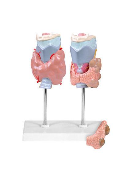 Pomoc składa się z 2 modeli tarczycy, rozkładany na 4 części. Pierwszy ilustruje tarczycę Graves ,chorobę autoimmunologiczną, najczęstsza przyczyna nadczynności tarczycy. Drugi model pokazuje gruczolak i rak tarczycy w porównaniu z normalną częścią po prawej stronie tarczycy