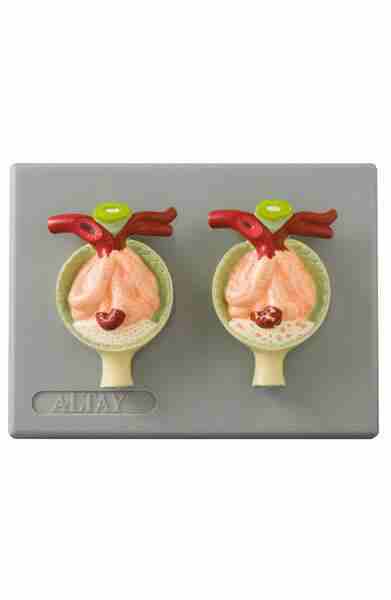 Model w powiększeniu 300 razy, składa się z 2 części krwinek nerek: pierwsza przedstawia anatomię zdrowego kłębuszka, drugi opisuje najważniejsze kłębuszkowe patologie z powodu nadciśnienia tętniczego: tętniczka ze zmianami miażdżycy, zmiany naczyniowe, endotheliocyte, a w konsekwencji zwiększenie ilości białek w  osoczu krwi w moczu. Wszystkie elementy są zaprezentowane z dużą dokładnością.