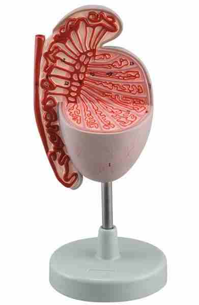 Model pokazuje przekrój  ludzkiego jądra w tym: najądrze, nasieniowód przewodu, kanaliki nasienne jąder .
