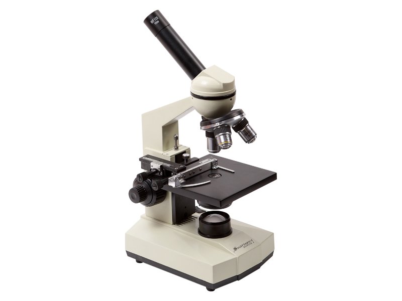 Świetny, transmisyjny mikroskop z podwójnym systemem ogniskowania oraz oświetleniem LED.