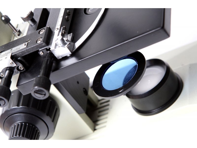 Na wyposażeniu także dwuwarstwowy stolik krzyżowy ułatwiający ustawienie preparatu, wyszukiwanie interesujących fragmentów oraz bardzo precyzyjne ich ustawienie.