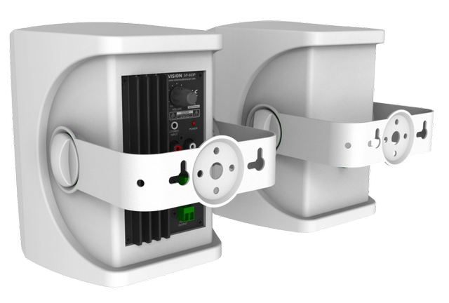 Wbudowany wzmacniacz stereo 2 x 12W RMS oraz trójdrożna konstrukcja sprawiają, że głośniki te są idealne do małych i średnich klas lekcyjnych, sali konferencyjnych, a także do barów czy restauracji. Łatwy montaż - dołączone uchwyty montażowe umożliwiają łatwą instalację przez jedną osobę. Unikalny system pochylania głośnika umożliwia szybki i łatwy dostęp do panelu tylnego. Drugi głośnik podłączany pojedynczym przewodem głośnikowym. Sterowania pracą głośników - pokrętło regulacji głośności znajduje się na tylnym panelu głośnika głównego. Automatycznie zmiksowane źródła sygnału pozwalają na uniknięcie uciążliwego przełączania. Moc pojedynczego głośnika: 12W Oporność: 4 ohm Średnica głośników: Woofer: 4" / Tweeter: 1" / Squawker: 2" Współczynnik zawartości harmonicznych/współczynnik zniekształcenia harmonicznego <1% Częstotliwość: 100Hz - 16kHz Wymiary głośnika: 150 x 145 x 220 mm Waga 3.4 kg (para), w opakowaniu 3.5 kg Kolor biały, materiał MDF W zestawie: uchwyty montażowe, przewód zasilający 2m, przewód głośnikowy 5m