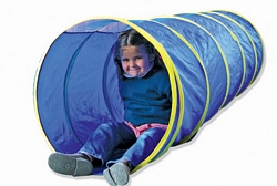 Tunel - ( kolor czerwony ) wzbogaca ćwiczenia na torach przeszkód o czworakowanie i czołganie się. Tunele są lubianym przez dzieci miejscem w każdej zabawie. Wykonany z mocnego tworzywa tunel posiada pasek przezroczystej siatki i wszyte obręcze. Po skończonej zabawie tunel łatwo jest złożyć i przechować.