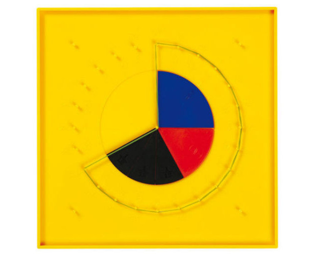 Uczniowie zrozumieją podstawowe pojęcia jak obliczania ułamków . Rozwiązują problemy i ćwiczą na planszy - geoplan ( 23 x 23 cm ), wewnętrznym kręgu. Możesz także użyć gumki ,zahaczając o wypukłe ,,szpilki" na kole .