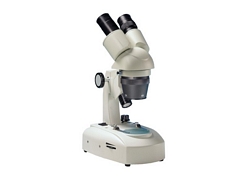 Dwuokularowy, dwuobiektywowy mikroskop o zakresie powiększeń 20x-80x. Przydatny w mineralogii, elektronice oraz numizmatyce.