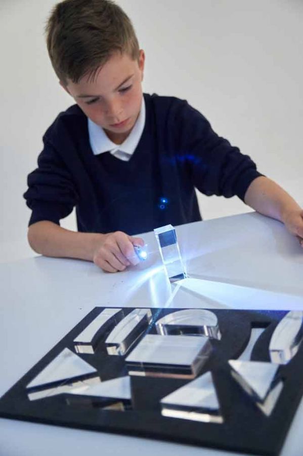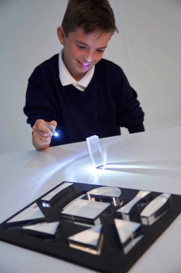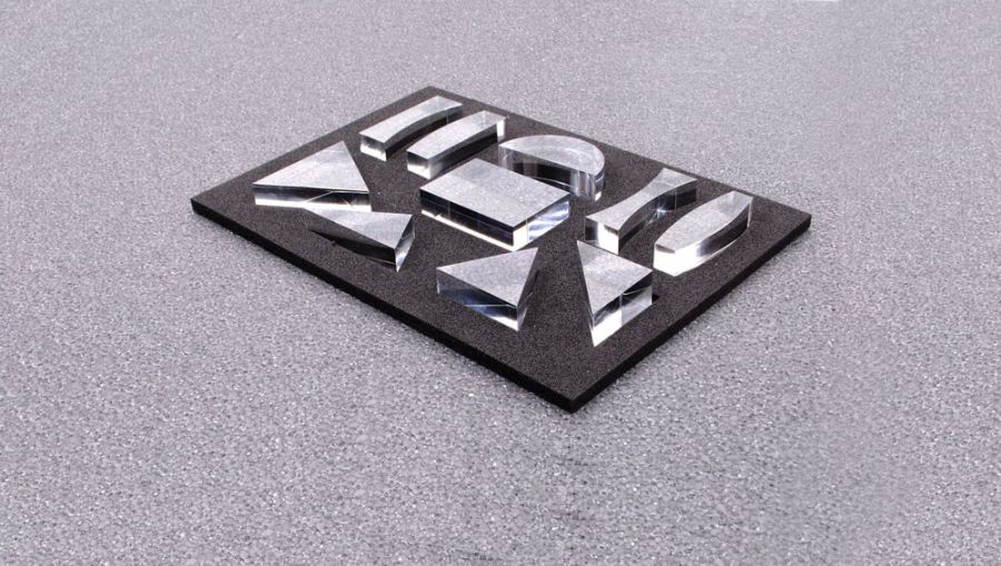 Zestaw zawiera dziesięć optycznych akrylowych graniastosłupów o grubości 25 mm: