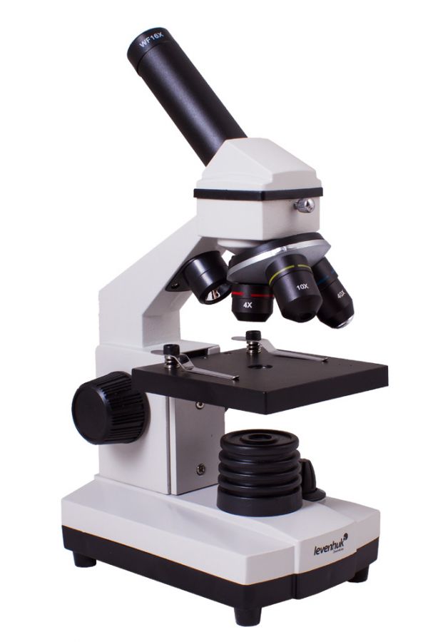Wytrzymały korpus mikroskopu wykonany jest z metalu, dzięki czemu może być wykorzystywany w szkołach i na uniwersytetach podczas zajęć z biologii i chemii. Głowica nachylona jest pod kątem 45 stopni, co pozwala na wygodne prowadzenie obserwacji. Monokularowa głowica obraca się w zakresie 360° wokół własnej osi, co jest bardzo przydatne podczas pracy w grupie: nie trzeba przenosić mikroskopu – wystarczy obrócić głowicę. Oświetlenie zasilane jest za pomocą przewodu lub baterii, dzięki czemu z mikroskopu można korzystać na zewnątrz lub w szklarni.