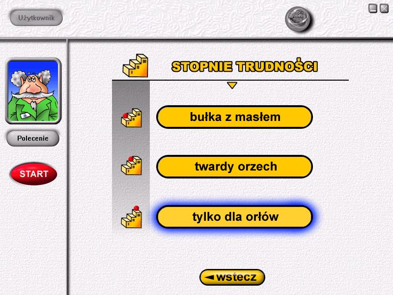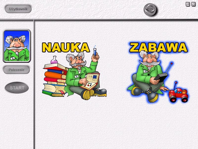 Pełna wersja programu komputerowego PORUSZ UMYSŁ jest podzielona na dwie zasadnicze sekcje: NAUKĘ i ZABAWĘ.