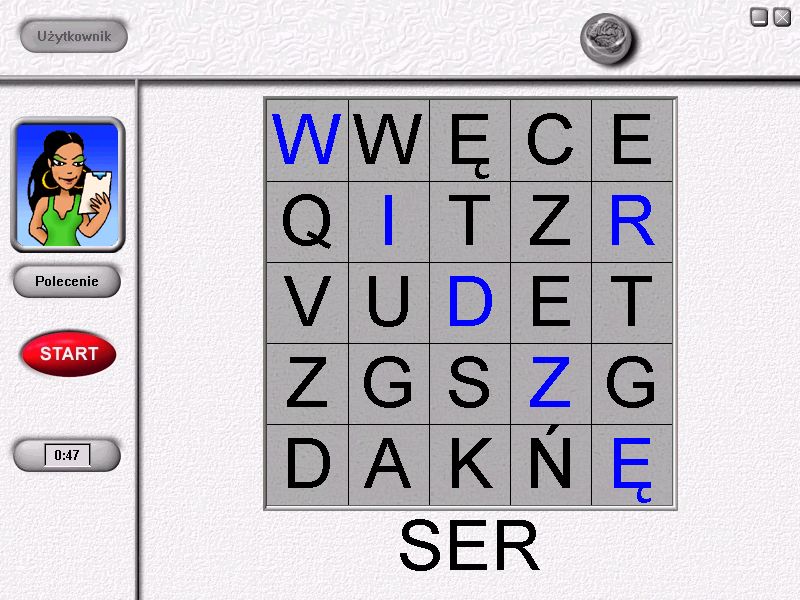 W części ZABAWA znajdują się następujące kategorie ćwiczeń:
