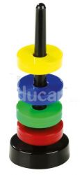 Krążki magnetyczne zachowują się tak, jak magnesy zachowywać się powinny: odpychają się lub przyciągają w zależności od ułożenia biegunów. Użycie trzpienia z podstawą wywołuje efekt zaskoczenia, gdyż krążki lewitują nad sobą.