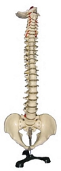 Jednoczęściowy model szkieletu w rzeczywistych wymiarach ukazuje w dokładny sposób budowę każdego kręgu oraz związek pomiędzy kręgosłupem a miednicą. Wykonany jest z twardego tworzywa sztucznego.