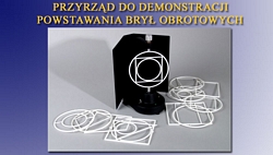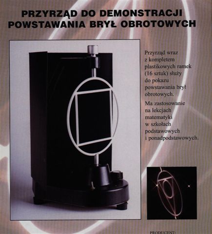 Zestaw sklada się z: plastikowych ramek (16 sztuk) które służą do pokazu powstawania brył obrotowych.Zasilacz jest na wyposażeniu. Jest to urządzenie kompletne i gotowe do prezentacji.