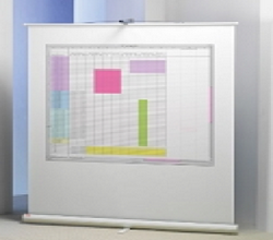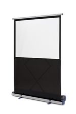 Ekran ,,podłogowy" 165x122cm . Ultra lekka, stabilna i odporna na przenoszenie konstrukcja, chowana w solidnej, aluminiowej obudowie z wbudowaną rączką, ekran biały o matowej powierzchni. Rozstawiany w pionie.