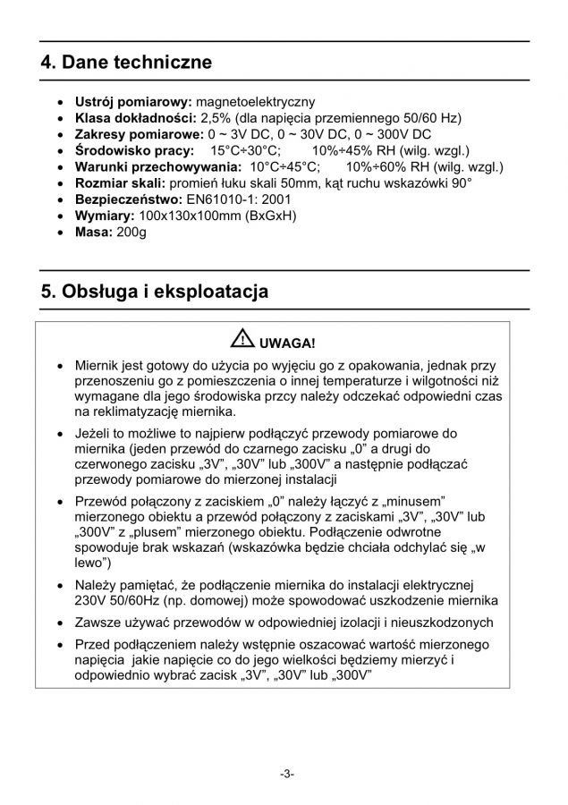 Woltomierz jest przeznaczony do stosowania w pomieszczeniach zamkniętych i wyłącznie do celów dydaktycznych.