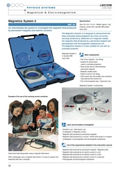 Zestaw do elektromagnetyzmu składa się z dużych, kolorowych, łatwych do obserwacji elementów mieszących się w plastikowej walizce wyściełanej gąbką. Przeprowadzenie ćwiczeń jest szybkie i proste. Zestaw pozwala na demonstrowanie rozkładu pola magnetycznego wokół magnesów oraz przewodników (o różnych kształtach), przez które płynie prąd elektryczny. W ciągu kilku minut uczniowie i ich nauczyciele mogą przeprowadzić wiele różnych eksperymentów.