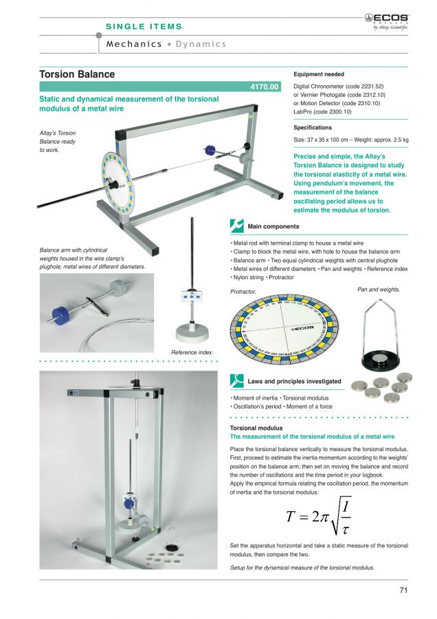 Przy użyciu ruchu wahadła, pomiar okresu drgań wagi pozwala określić moduł skręcenia.