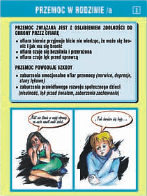 Pragniemy przedstawić Państwu pakiet edukacyjny dotyczący przemocy. Składa się on z dwóch części: Cześć I - Przemoc w rodzinie i Część II - Przemoc rówieśnicza. Przeznaczony jest dla nauczycieli, pedagogów, członków Komisji Rozwiązywania Problemów Alkoholowych, policjantów, kuratorów sądowych, pracowników Pomocy Społecznej, pielęgniarek szkolnych, środowiskowych oraz wszystkich osób pracujących z rodziną i młodzieżą.Tematy plansz:Przemoc w rodzinie ----------------------------------------------2 x B3