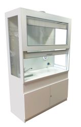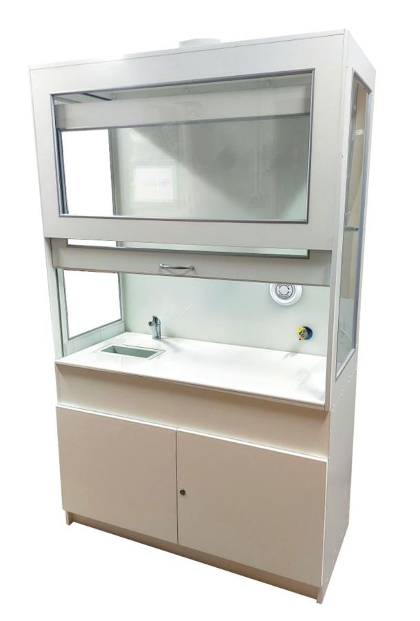 W górnej komorze zamocowana jest przesuwana okiennica podnoszona za pomocą systemu „Fennel”. Pozwala on na ustawienie okiennicy (góra-dół) w dowolnym położeniu. Wentylator z płytą montażową stanowi wyodrębnioną część wyciągu do montażu na otworze kominowym. W standardzie wentylator kanałowy o mocy 350-500 m3/h dwubiegowy. Instalacja wyciągowa wykonana jest z polistyrenu w wersji podstawowej. Króciec wyciągowy na suficie fi 150mm. Dygestorium chemiczne Pro-II posiada system wentylacji wywiewny. Całość na nośniku płyty laminowanej. Nóżki regulowane niewidoczne z zewnątrz, umożliwiają wypoziomowanie urządzenia. Dygestorium jest dostępne w trzech kolorach: biały, buk, popiel. Dodatkowe kolory na specjalne zamówienie.