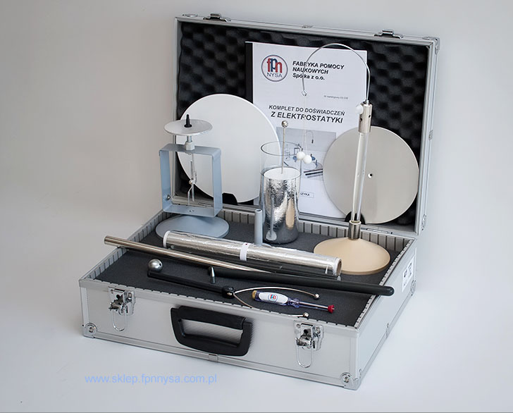 Komplet pozwala na realizację szeregu doświadczeń z zakresu elektrostatyki obejmujących m.in.